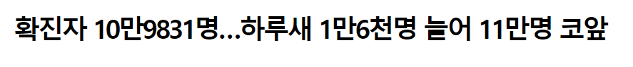 확진자 10만9831명…하루새 1만6천명 늘어 11만명 코앞