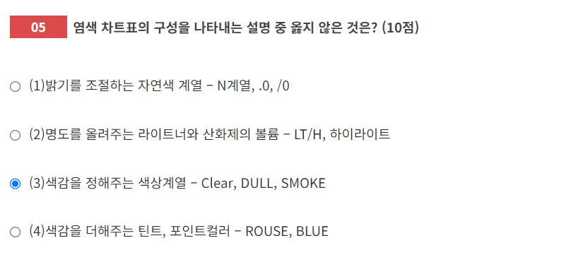 염색 차트표의 구성을 나타내는 설명 중 옳지 않은 것은? (10점)