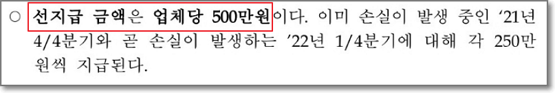 3. 소상공인 손실보상 선지급 금액