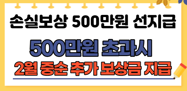 이번에 500만원의 선지급액을 받았으나 추후 실제 손실보상액이 500만원을 초과할 경우에는 초과한 금액에 대해서는 2월 중순에 추가로 보상금을 지급합니다.