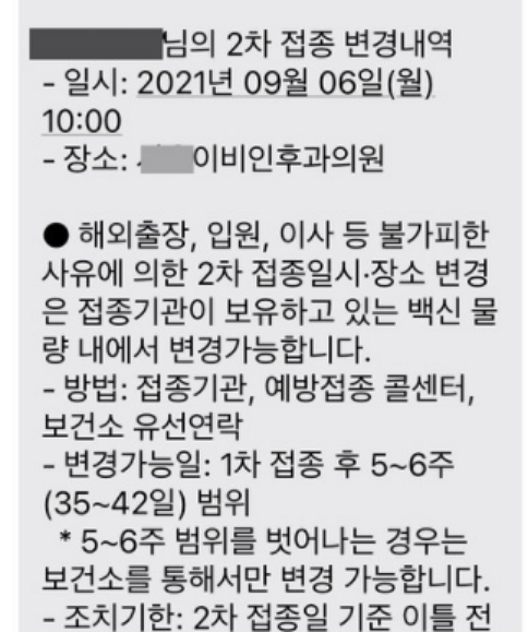 백신 2차접종 예약변경이 완료되면 아래처럼 문자가 오게됩니다.