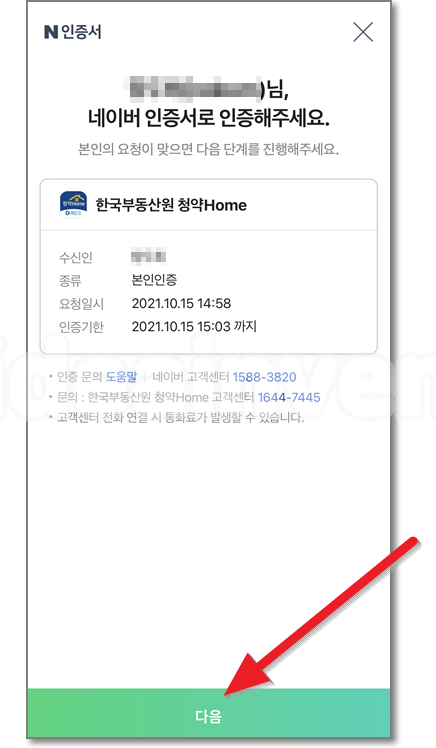네이버 인증서를 선택해서 로그인을 하려고 하면 휴대폰으로 알림이 오며 인증을 누르면 계속진행할 수 있습니다.