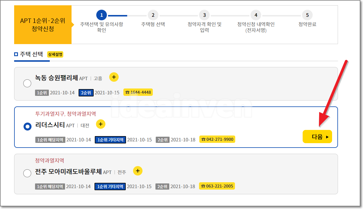 3. 청약하고자하는 항목 선택
