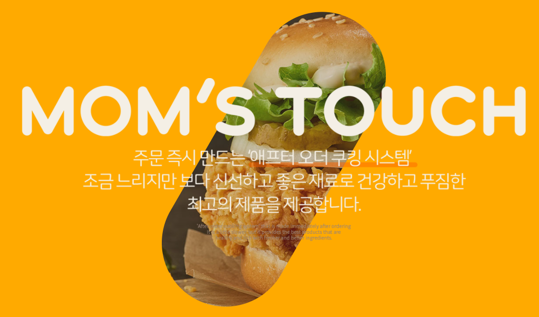 맘스터치는 사실 매장에 가서 주문을 하면 "이게 패스트푸드인가?" 할 정도로 좀 시간이 걸리는 경우가 있는데요. 실제로 15분 이상 걸리는 경우가 많이 있더라고요. 그런데 닭다리살로 패티를 만드는 과정 자체가 냉동 패티를 데워서 만드는 게 아니라 냉장 패티를 직접 조리해서 버거에 넣어주더라고요. 사실 패스트푸드가 아니라 수제버거 인 셈이고 홈페이지에서도 수제버거라는 점을 내세우고 있더군요.
