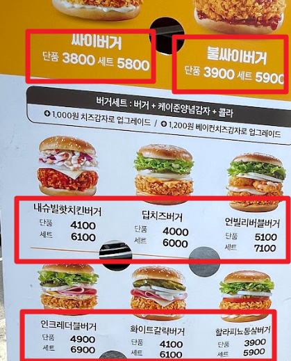 왜 "치즈홀릭버거(체다)"로 지었을까 생각을 해보게 되었는데요. 괄호 안에 (체다)라고 쓴 메뉴는 이 메뉴 하나뿐이었습니다. 나머지는 모두 괄호가 없습니다. 이상하지 않나요?