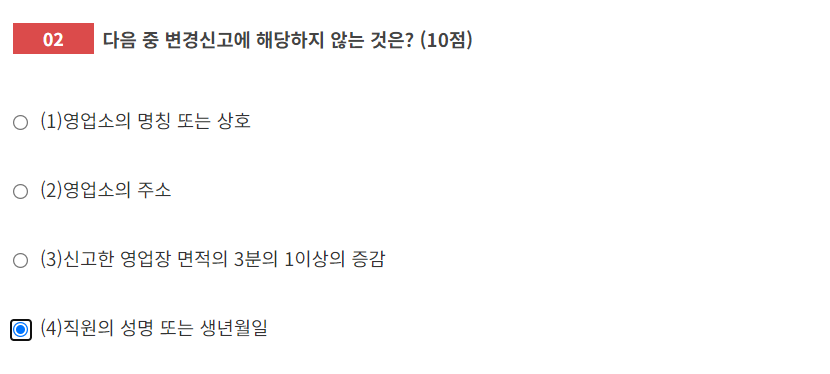 다음 중 변경신고에 해당하지 않는 것은? (10점)