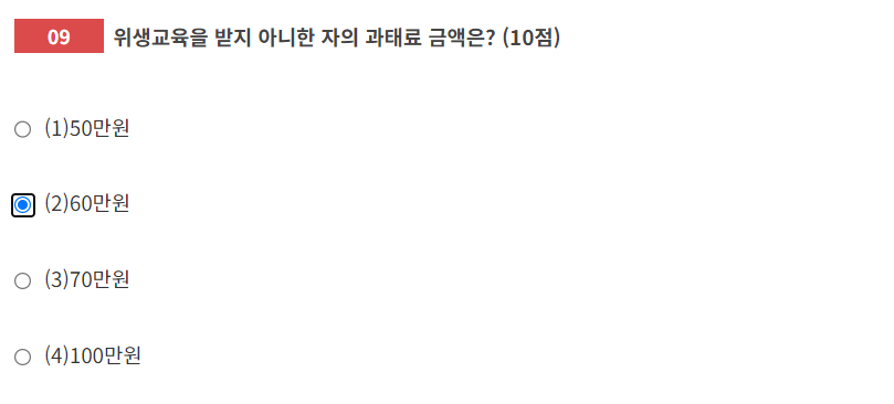 위생교육을 받지 아니한 자의 과태료 금액은? (10점)