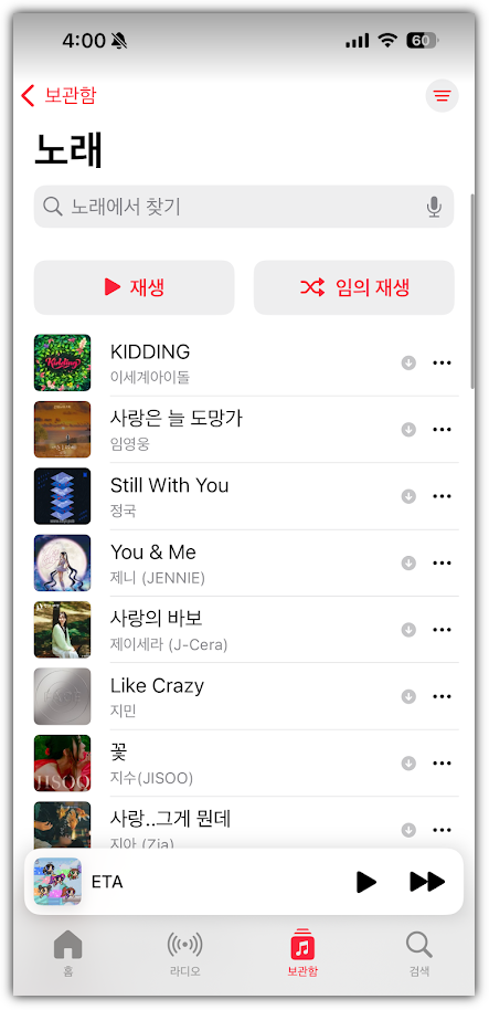 노래가 그렇게 많진 않지만, 아이폰에서 한곡씩 지우다가 너무 힘들었는데 한꺼번에 지우는 방법이 있었습니다.