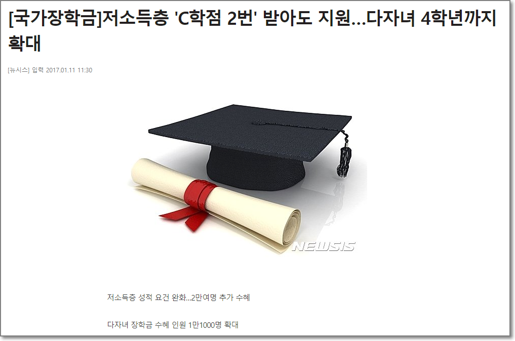 소득분위 1~3구간 학생들의 경우 직전학기 70점 이상~80점 미만이라도 2회에 한해서 경고 후에 국가장학금(I유형, 다자녀(3자녀이상))수혜 가능한 것입니다. 4.5점 만점에서 학점이 2.6~3.0정도가 되면 C학점 경고제를 받고 두번은 장학금을 받을 수 있지만 성적이 2.5점 이하라면(2.5점 포함) C학점 경고제도 없이 바로 장학금 대상에서 탈락합니다.