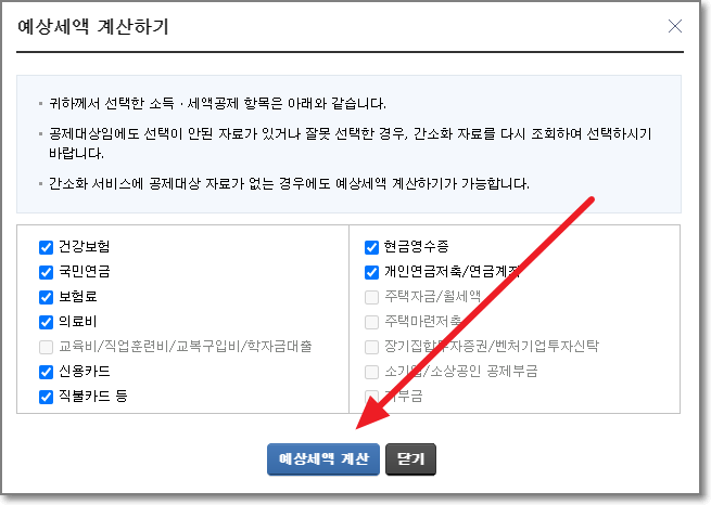 그 상태에서 예상세액 계산을 누르면 됩니다.