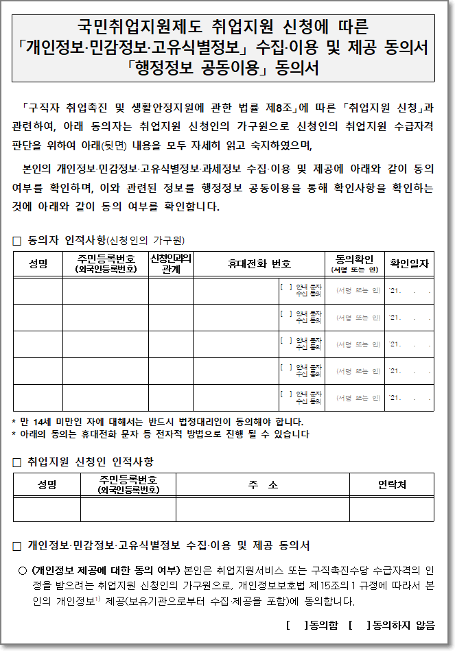 취업지원 신청서