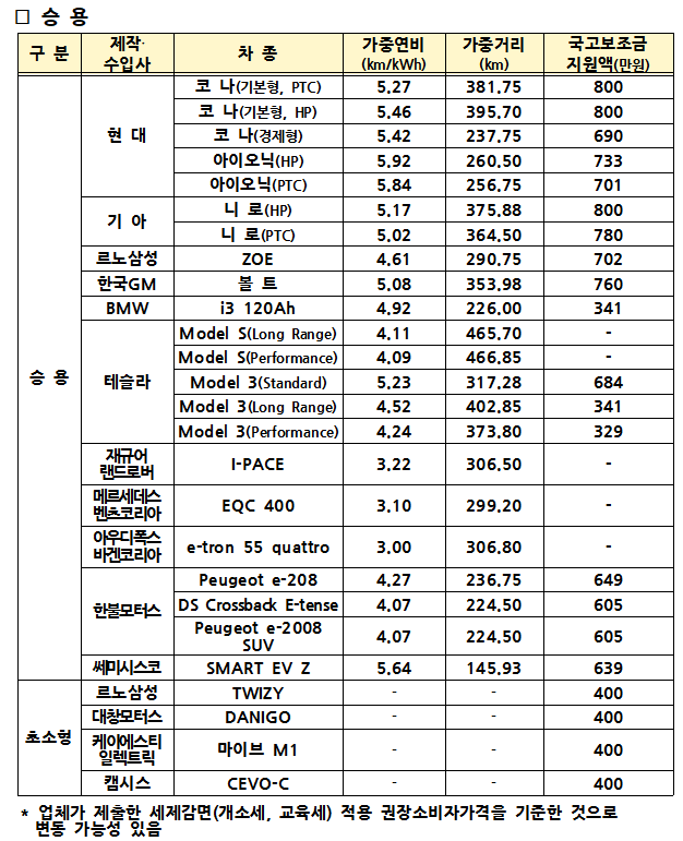 3. 전기효율이 뛰어난 차량 지원강화 및 지자체보조금 국비보조금에 비례해 지급