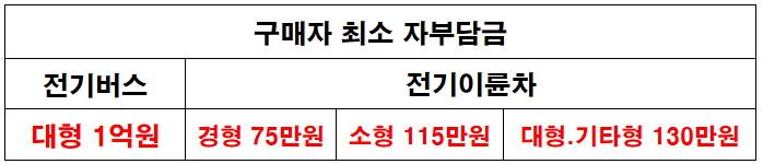 전기버스 및 전기 이륜차에 대해서는 구매자 최소 자부담금 설정