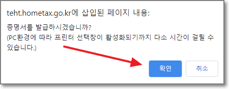 발급번호를 누르면 아래처럼 "증명서를 발급하시겠습니까?" 라고 나옵니다. "확인"을 누릅니다.