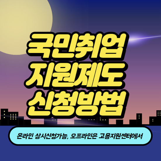 국민 취업지원제도란 고용보험의 사각지대에 있는 15세부터 59세의 저소득 구직자와 경단녀(경력단절여성), 폐업한 영세 자영업자, 미취업청년, 특고(특수형태고용종사자)등이 구직활동을 할경우 1인당 월50만원씩 최장 6개월간 총 300만원을 "구직촉진수당"으로 지급하는 제도입니다.