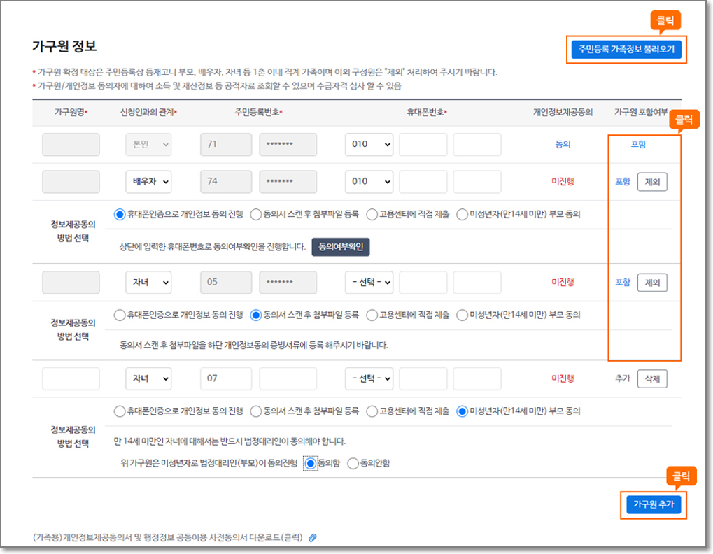 가구원별 재산을 모두 등록합니다.