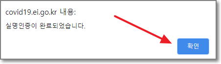 이제 실명인증이 완료되었다고 나옵니다. "확이"을 누릅니다.