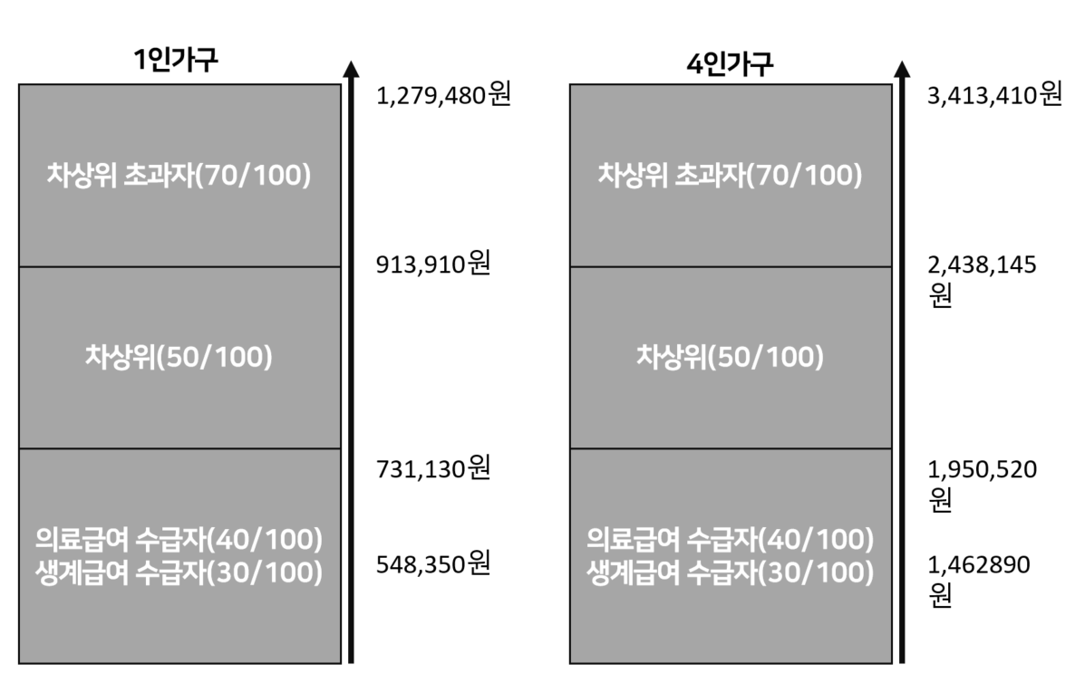 * 선정기준액은 소득하위 70% 수준에 해당하도록 선정하여 매년 고시합니다.