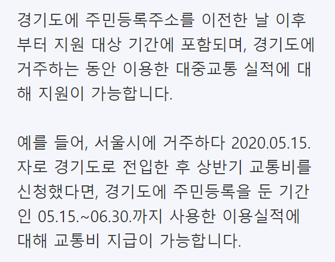 이중에서 교통비 지원금을 상반기에 이미 받은 경우는 기존에 받은 금액을 제하고 지원받을 수 있습니다. 예를 들면 2020년 상반기에 교통비 8만원을 사용해서 3만원을 지원 받았다면 하반기에는 최대 9만원까지 지원 받을 수 있는 것입니다. (총액 12만원)
