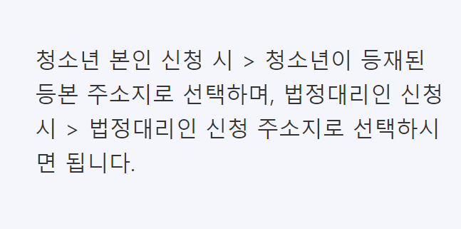1. 인증서 : 청소년 본인 또는 주민등록상 거주지가 동일한 세대원 명의 사용