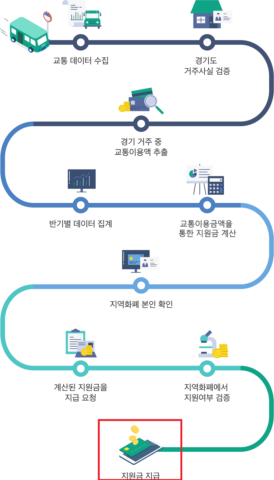 교통비 지급대상자의 휴대폰에 '경기지역화폐'앱을 설치한 후 회원가입 및 주민등록상 거주 시군의 지역화폐를 발급받아 카드를 휴대폰 앱에 등록