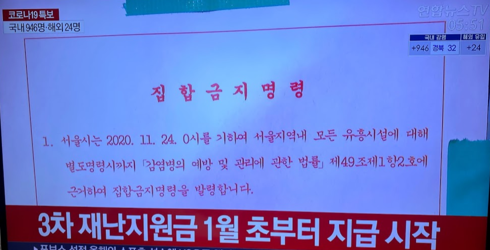 서울시는 지난 2020년11월24일 화요일 0시를 기해서 서울지역내 모든 휴흥시설에 대해서 "감염병의 예방 및 관리에 관한 벌률" 조49조제1항2호에 근거하여 집합금지명령을 발령했습니다. 이에 따라 수많은 자영업자들이 영업을 제대로 하지 못하고 피해를 봤는데요. 이러한 소상공인들의 피해를 조금이나마 보전하기 위해서 3차 재난지원금을 지급하기로 했습니다.