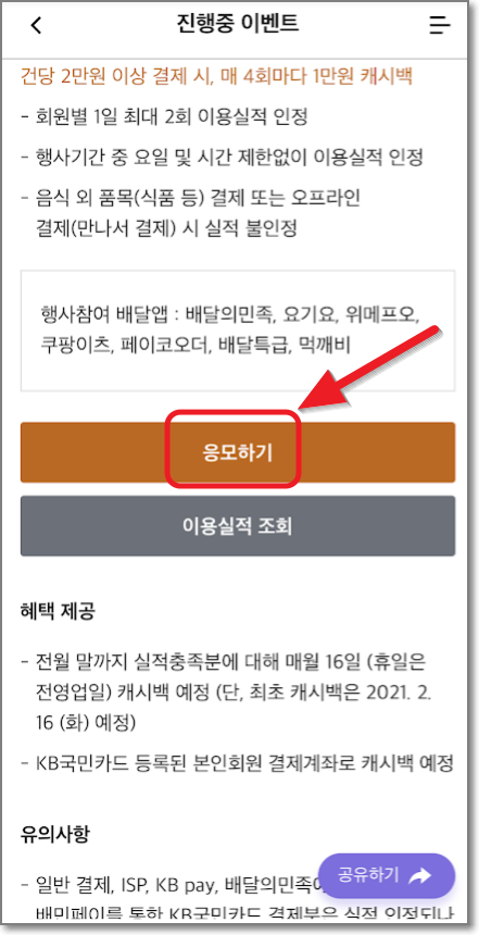 1. 카드사를 통해서 참여한다고 응모를 합니다.