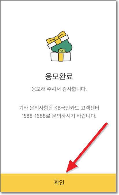 응모완료 되었습니다. 마지막으로 "확인"버튼까지 꼭 눌러주셔야 합니다.^^