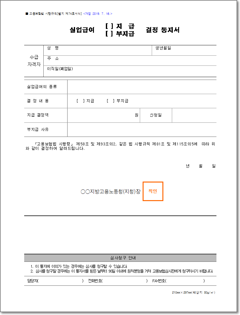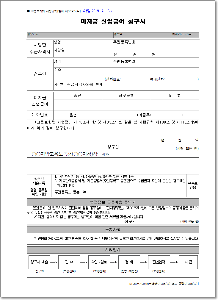 수급자격증 기재사항 변경,정정 신고서, 실업인정일 변경 신청서