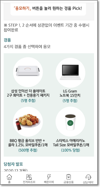 당첨자 발표는 12월7일(월) 이고요. 저는 LG Gram 15인치 노트북을 선택했습니다. 운에 한번 맡겨보겠습니다.