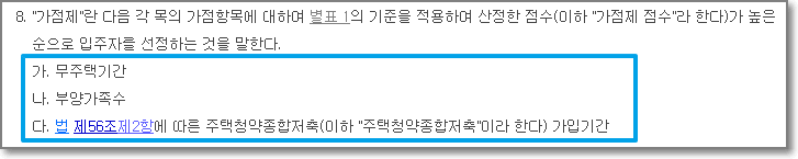 첫번째로 무주택기간에 대한 내용입니다. 읽다보면, 소형,저가주택이라는 내용이 나오는데, 이는 전용면적 60제곱미터 이하이면서 수도권은 1억3천만원 이하, 수도권외 지역은 8천만원 이하이면 "무주택"으로 인정해줍니다.