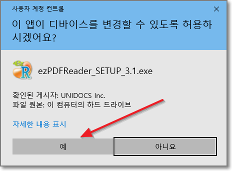 이 앱이 디바이스를 변경할 수 있도록 허용하시겠어요라는 질문에 "예"를 클릭합니다.