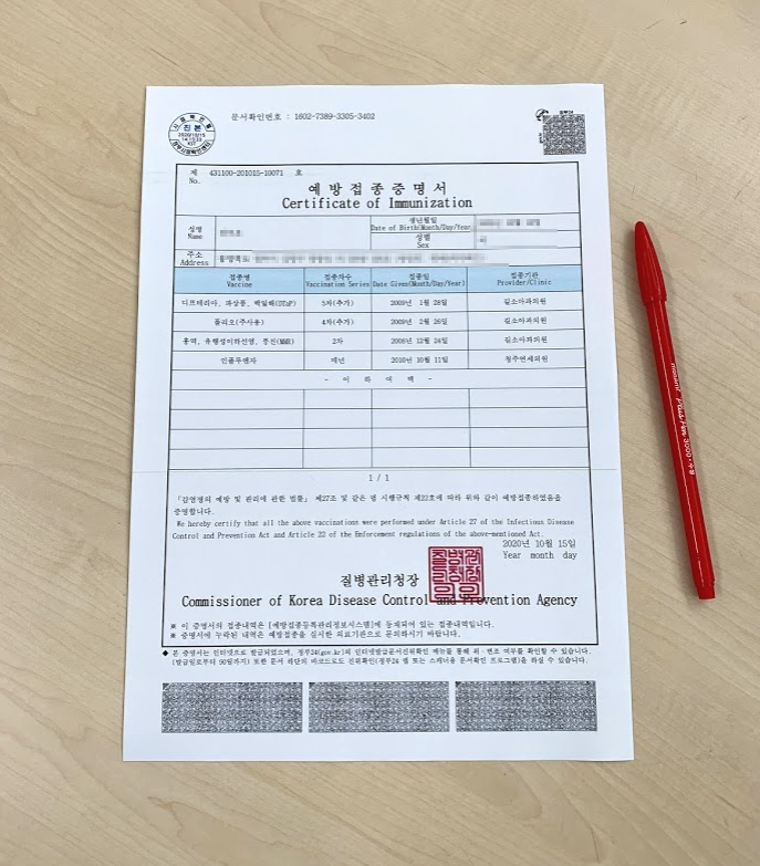 또한 해외에서도 마찬가지로 예방접종을 맞지 않았을 경우 해외학교에서 입학을 불허할 수도 있으므로 예방접종증명서는 해외유학시 내야할 필요서류이기도 합니다.