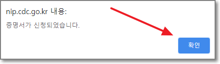 바로 증명서가 신청되었다고 나옵니다. "확인"을 누릅니다.