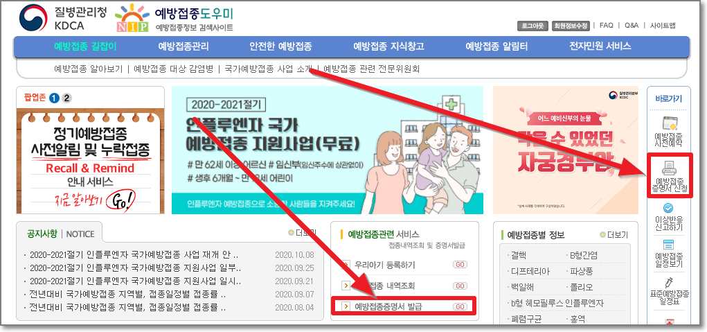 예방접종 증명서는 2군데에서 발급받을 수 있습니다.