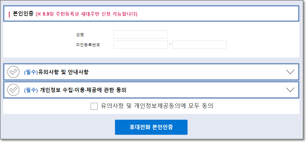 제일먼저 휴대폰을 통한 본인인증을 하시고요.