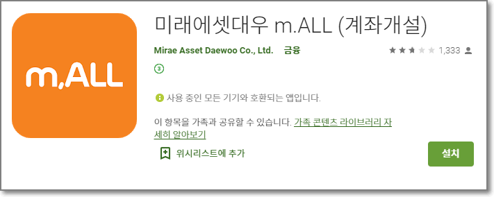 우선 아이폰과 갤럭시(안드로이드)에서 사용할 미래에셋 대우 m.ALL(계좌개설)을 설치합니다.