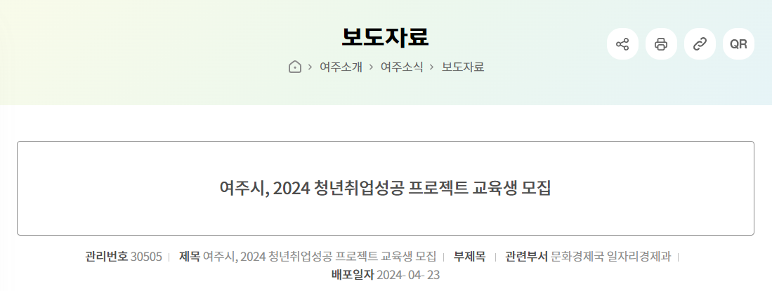 본 설명은 여주시청 누리집의 보도자료