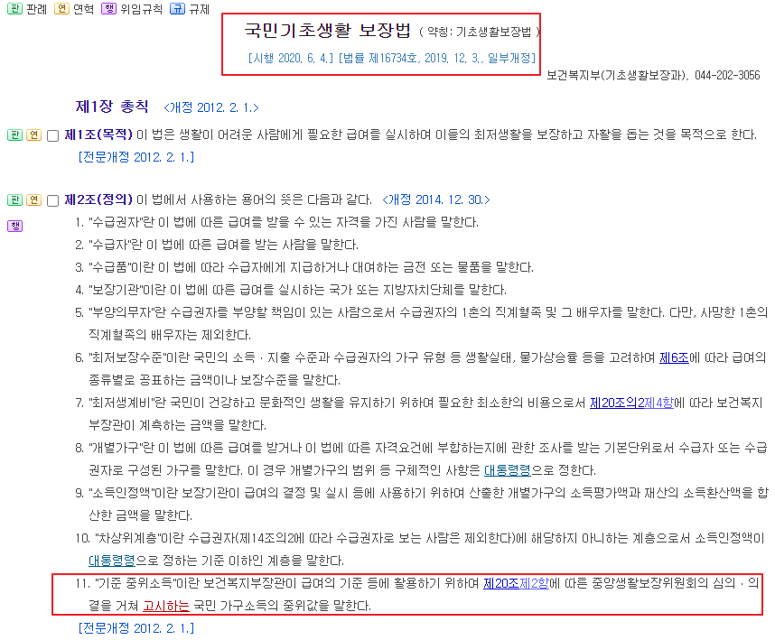 또한 중위소득은 법에서 "기준 중위소득"이라고 하며, 국민기초생활보장법의 제2조 11항에 나옵니다.