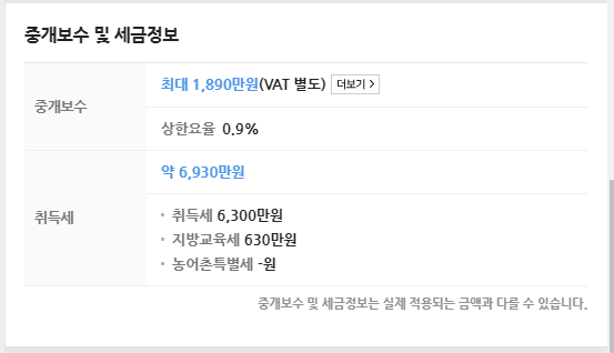 이는 2020년8월 현재 9억원 초과에 전용면적 85제곱미터 이하는 3.3%가 적용되서, 실거래가 21억이므로 3.3%인 6930만원이 되는 것입니다. 또한 중개보수 또한 실거래가 기준이므로 9억원 초과는 중개보수 역시 0.9%이므로 1890만원이 되는 것입니다.