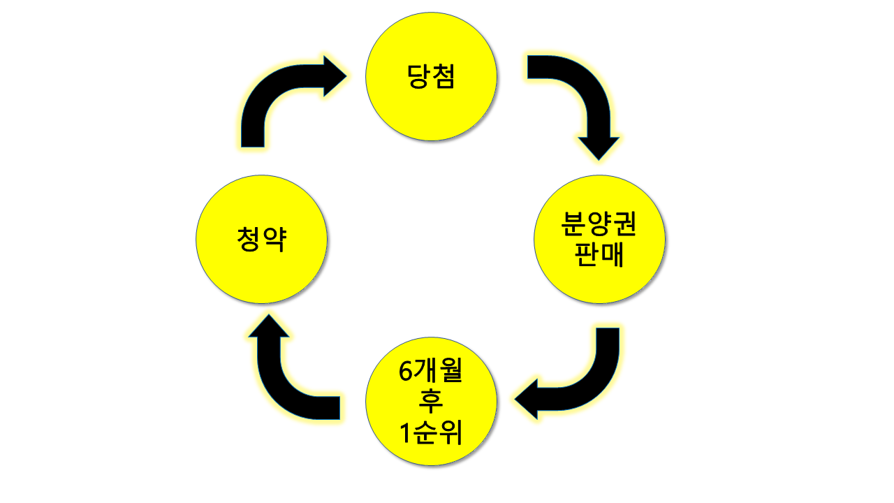 무주택이어야 하므로 일부러 청약, 당첨, 분양권 판매, 다시 6개월 후 1순위(지방에 한함), 그리고 다시 청약, 당첨, 분양권 판매를 하기 위해서 전세를 고집하는 사람들이 많습니다. (아래 이미지는 "서울외 지역"의 경우입니다. 서울은 1년)