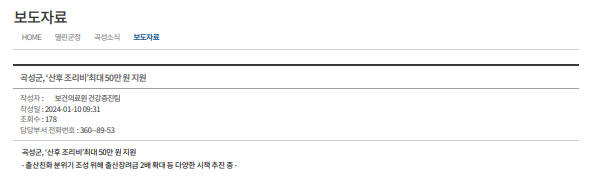 읽어주셔서 감사합니다. 곡성군과 함께 행복한 출산과 산후 회복을 경험하세요.