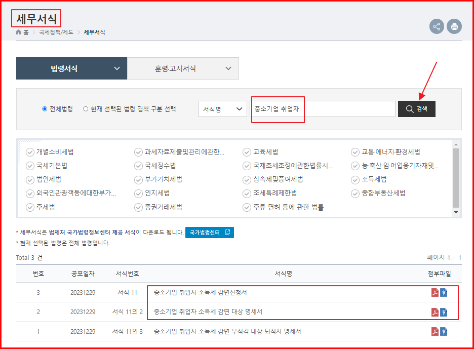 👉 중앙의 검색란에 '중소기업 취업자'를 검색