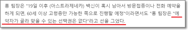 그 외의 연령대는 "잔여백신"을 접종예약 하려면 반드시 카카오톡이나 네이버 등을 통해서, 즉 앱을 통해서만 예약할 수 있도록 지침을 바꾸었습니다.