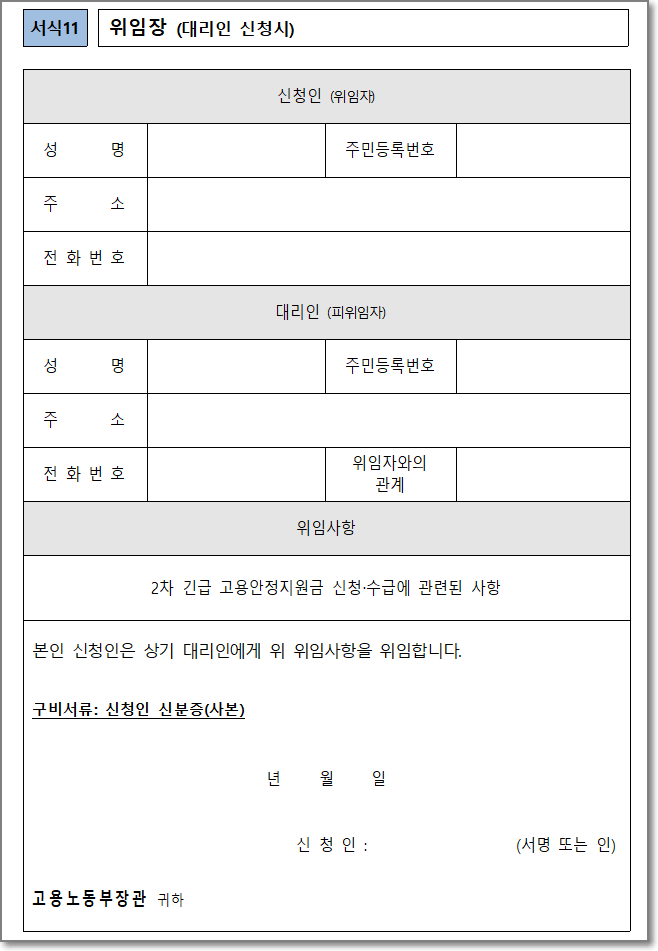 ▶ 2차 긴급 고용안정지원금(특고.프리랜서 고용안정지원금) 신청서