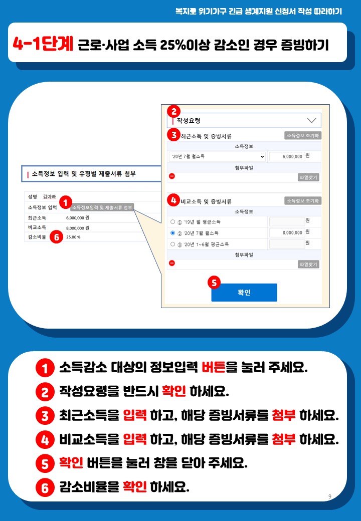 근로 또는 사업 소득이 25% 이상 감소한 경우 증빙하는 방법입니다.