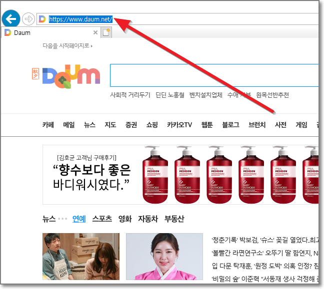익스플로러32비트로 다음 첫화면이 나왔습니다.
