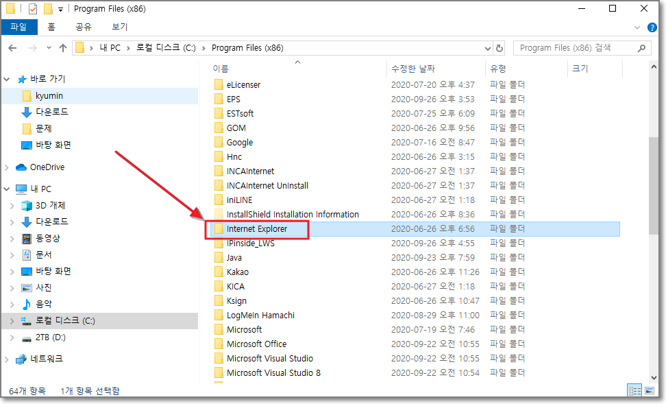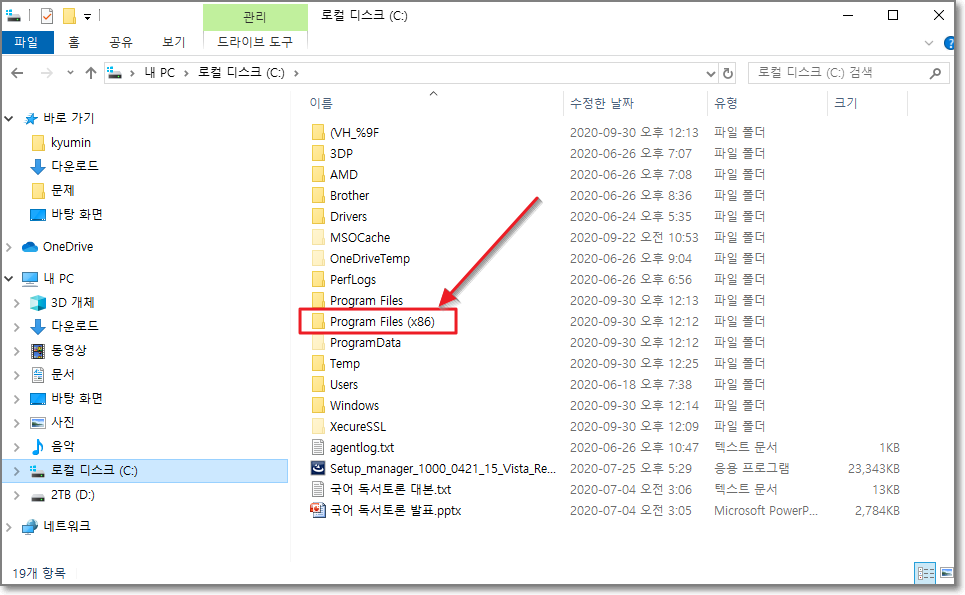 탁색기 창의 오른쪽에서 Program Files (x86)을 찾아서 더블 클릭합니다.