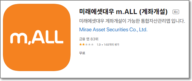 우선 아이폰과 갤럭시(안드로이드)에서 사용할 미래에셋 대우 m.ALL(계좌개설)을 설치합니다.