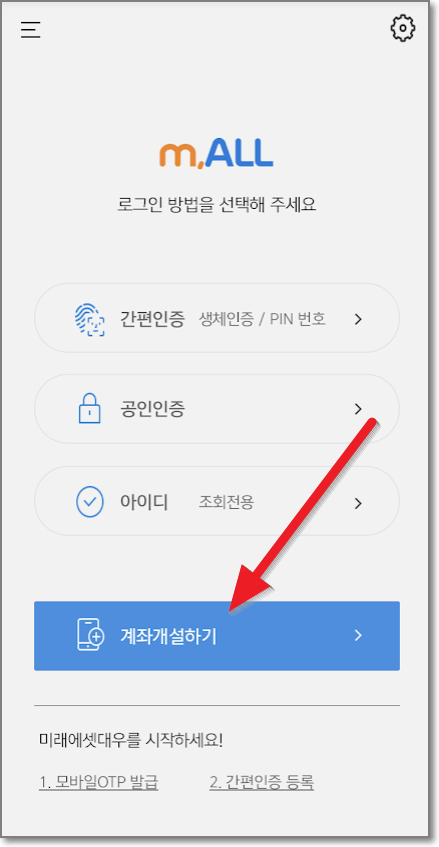 설치하고 앱을 실행하면 아래처럼 나오는데요. 여기서"계좌 개설하기"를 누릅니다.